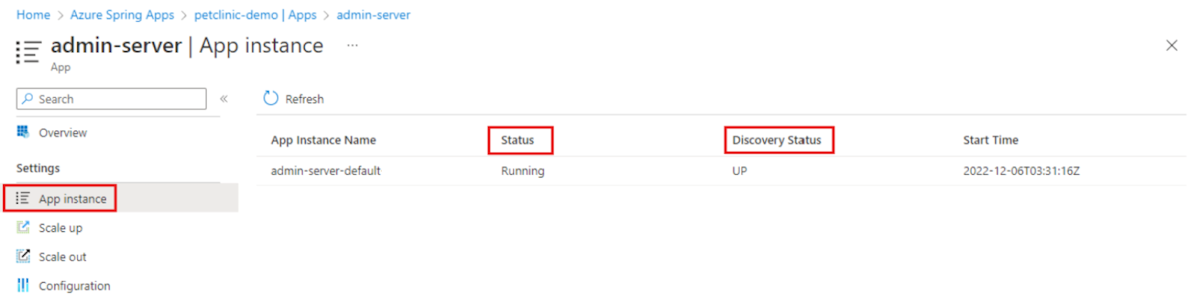 “应用注册”状态显示服务发现中的状态。 基本/标准计划使用 Eureka 进行服务发现。 有关 Eureka 客户端如何计算状态的详细信息,请参阅 Eureka 的运行状况检查。