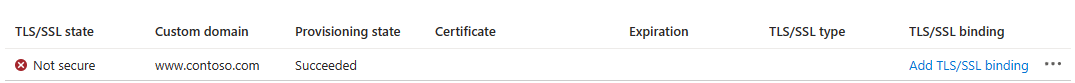 若要使用此证书保护自定义域,请确保将此证书绑定到特定的域。 有关详细信息,请参阅“添加 SSL 绑定”部分。