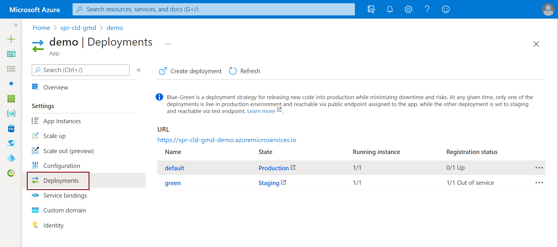 若要在 Azure Spring Apps 中设置蓝绿部署,请按照后续部分中的说明进行操作。