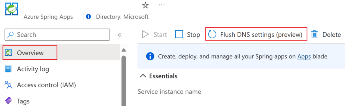 刷新现有 Azure Spring Apps 实例的 DNS 设置