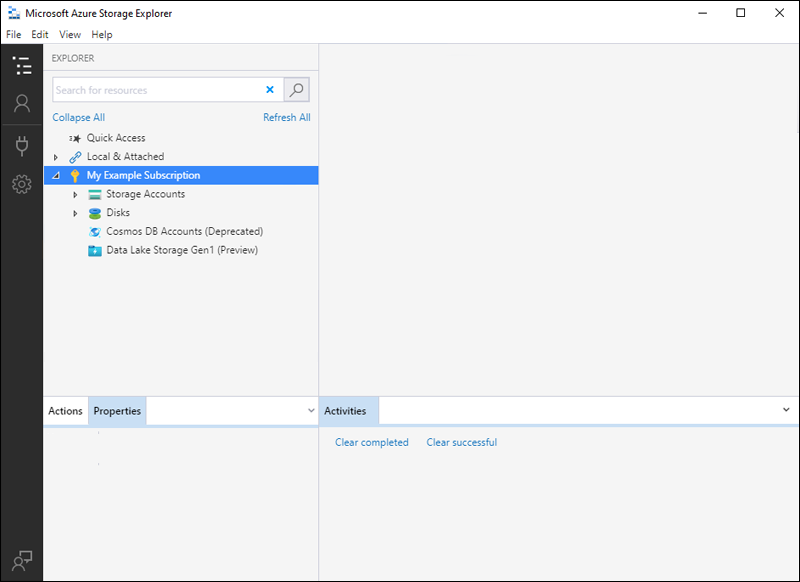 已在本地计算机上安装了 Azure 存储资源管理器。 若要安装适用于 Windows、Macintosh 或 Linux 的 Azure 存储资源管理器,请参阅 Azure 存储资源管理器。