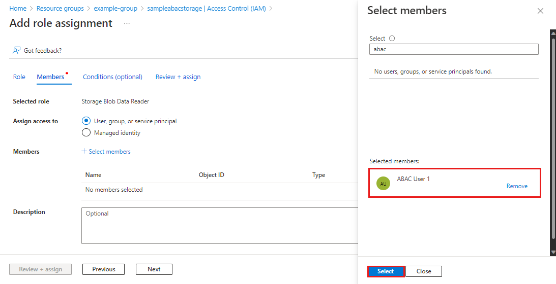 选择 “保存” 以添加条件并返回到“添加角色分配”页。