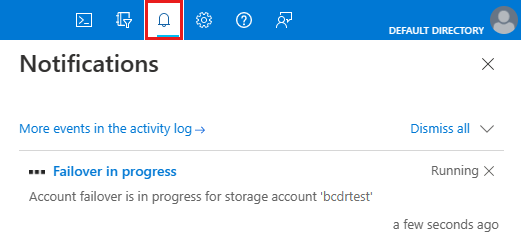 若要检查故障转移的状态,请选择 Azure 门户全局页面标头最右侧的钟形通知图标: