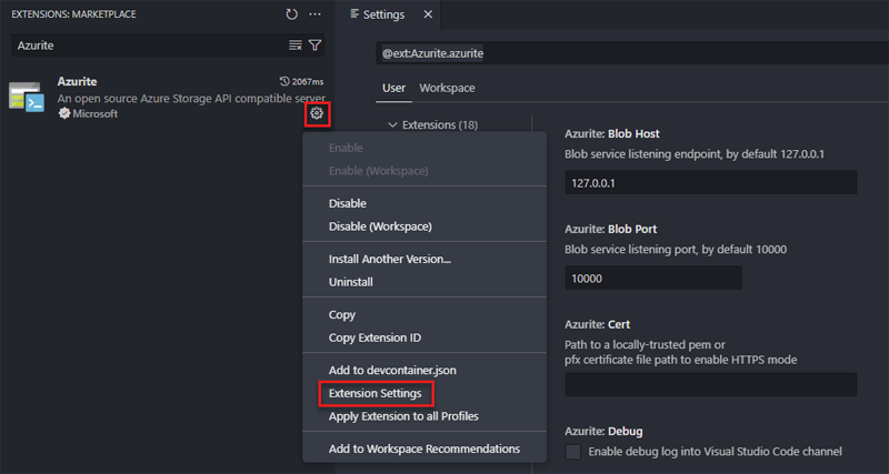 可选 - Azurite 在执行期间将数据存储在本地磁盘。