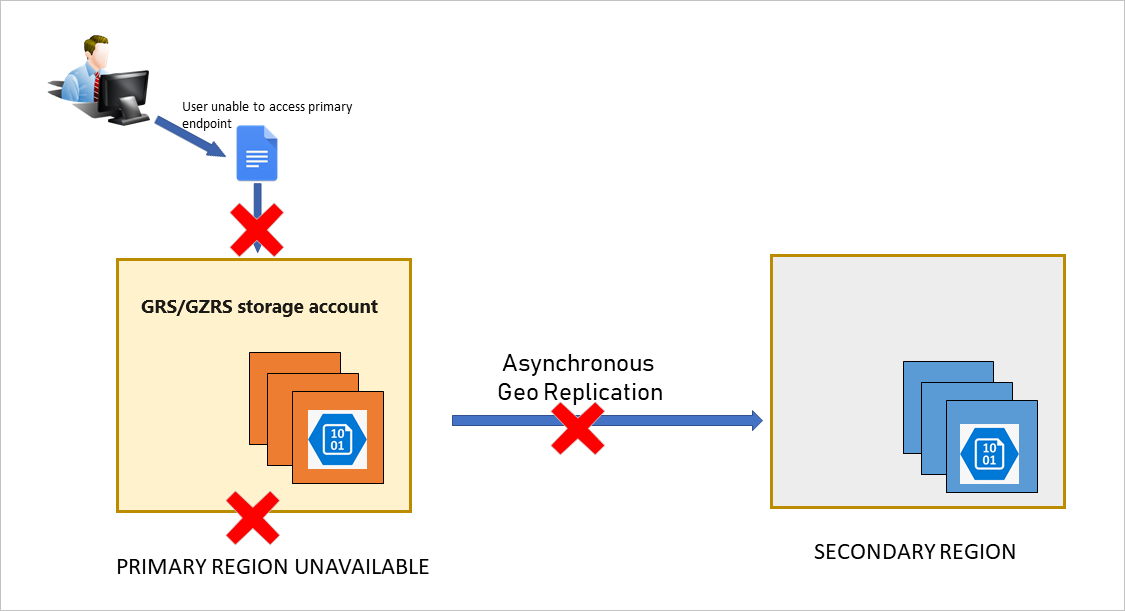 在由于重大灾难而导致区域丢失的极端情况下,Azure 可能会启动区域故障转移。 在此情况下,你不需要采取任何操作。 在 Azure 托管的故障转移完成之前,你对存储帐户不拥有写入访问权限。