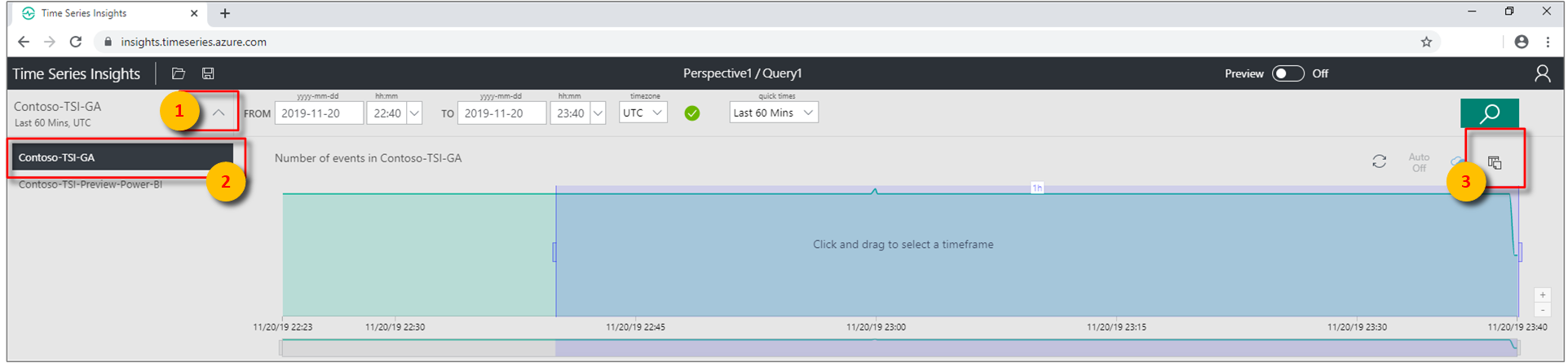 选择“概述”页面。 展开页面顶部附近的“概要”部分,找到“时序见解资源管理器 URL”并打开链接 。
