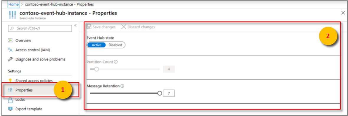 在受影响的事件中心,请考虑调整“消息保留”属性,以最大程度地减少在 Azure 时序见解中发生传入暂停时丢失数据的情况。