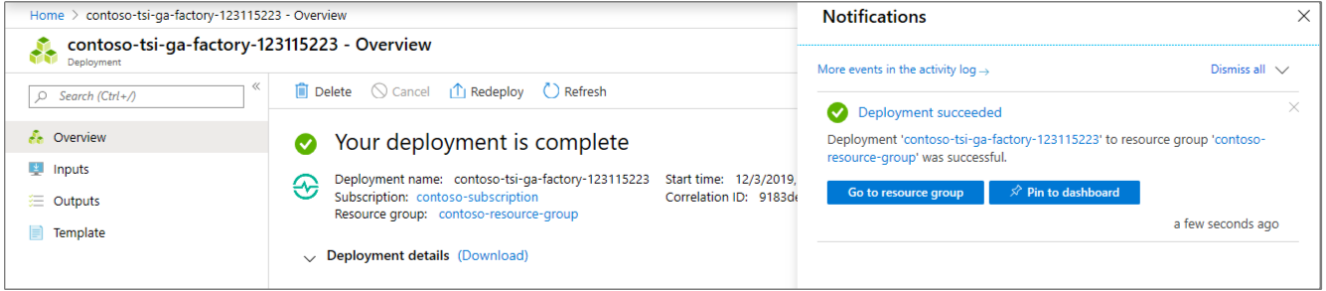 若要监视部署过程,请选择“通知”符号(钟形图标)。