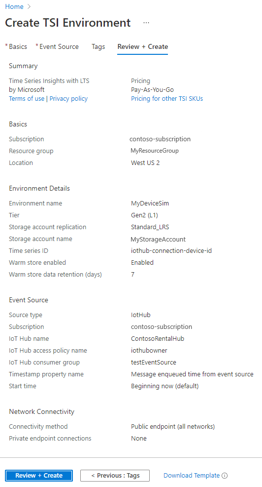 - 创建 Azure 时序见解 Gen2 PAYG 环境。