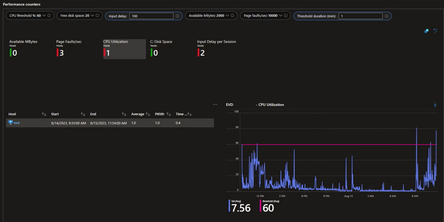 会话主机的问题(例如,会话主机的会话过多,无法应付最终用户正在运行的工作负载)可能是最终用户体验不佳的主要原因。 Azure 虚拟桌面见解可以提供有关资源利用率和用户输入延迟的详细信息,使你能够更轻松、更快速地查找用户是否受到 CPU 或内存等资源限制的影响。