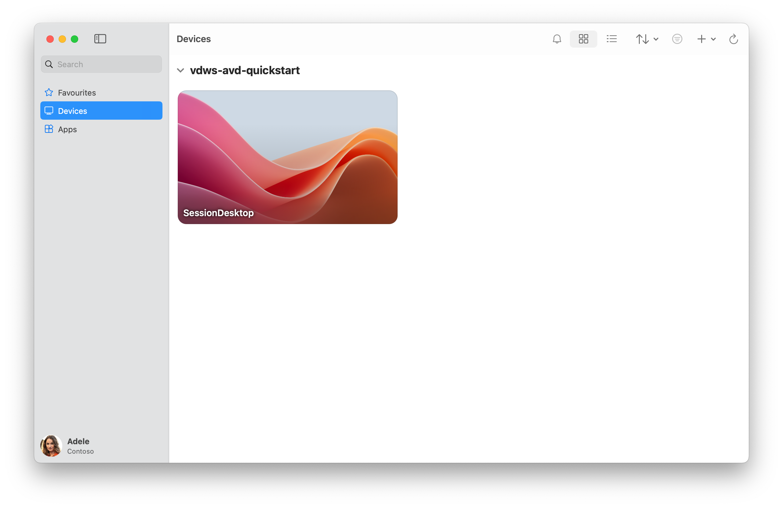 部署示例 Azure 虚拟桌面环境后,可以使用 Windows 应用 连接到该环境,并使用在部署期间分配的用户帐户登录。