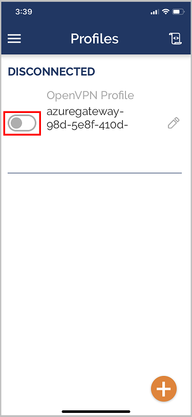 启动 OpenVPN 应用,并将“配置文件”页面中的开关向右滑动以进行连接