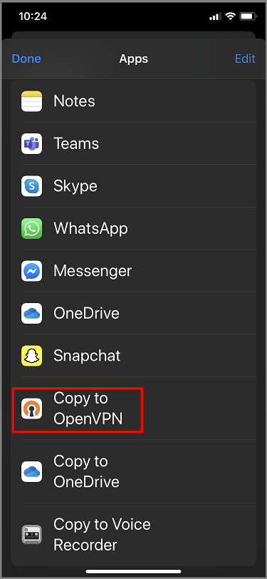 以下示例使用来自 App Store 的 OpenVPN Connect。