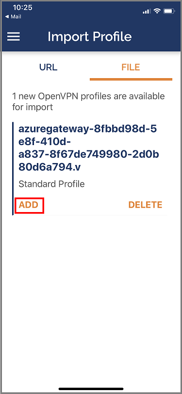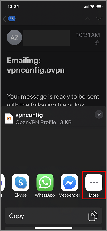 将配置文件 (.ovpn) 通过电子邮件发送到你的电子邮件帐户,该帐户是在 iPhone 上的邮件应用中配置的。