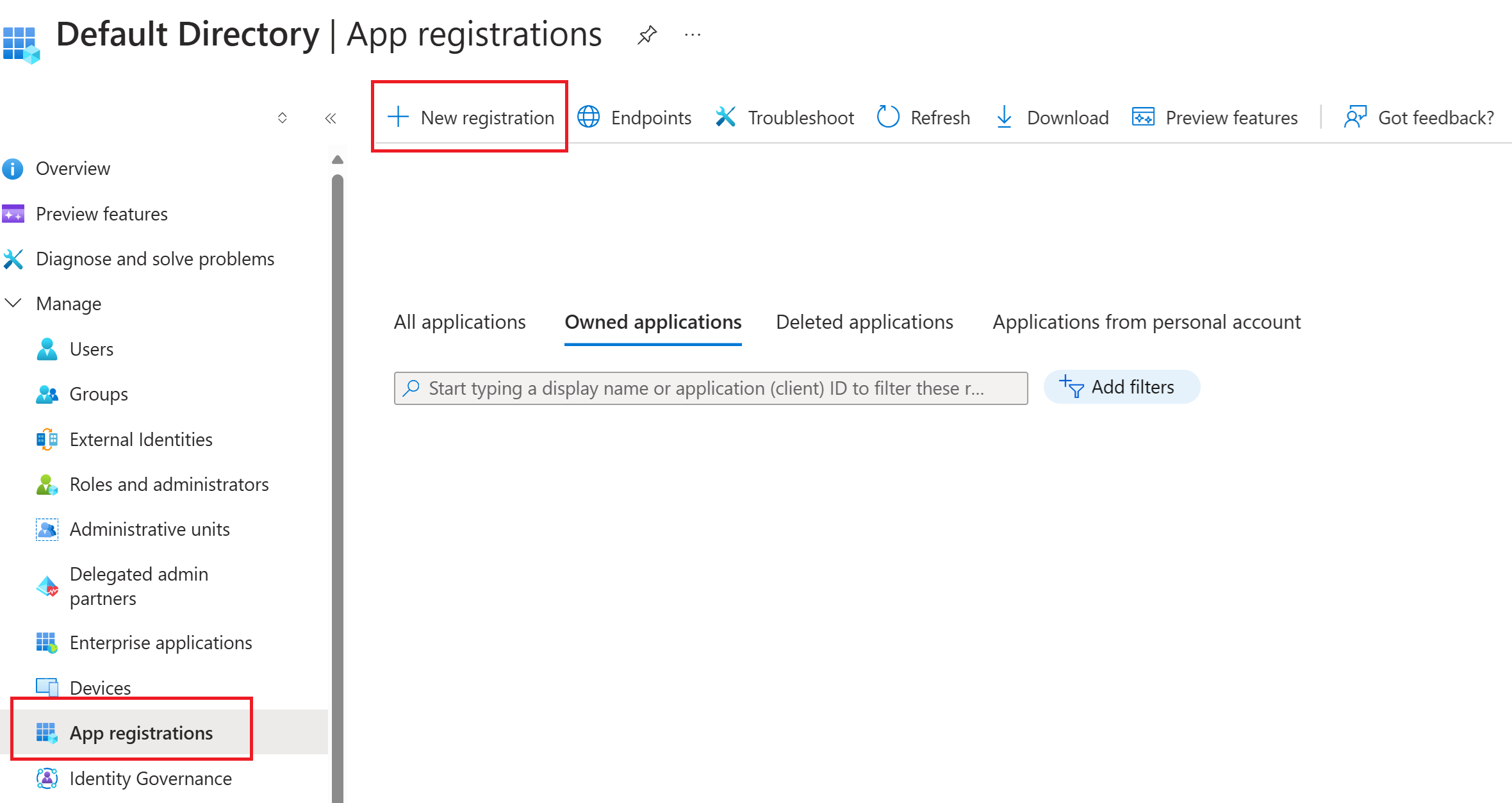 可通过几种不同的方法来访问“应用注册”页。 可以使用 Azure 门户和 Microsoft Entra ID。 使用具有云应用程序管理员角色或更高角色的帐户登录。