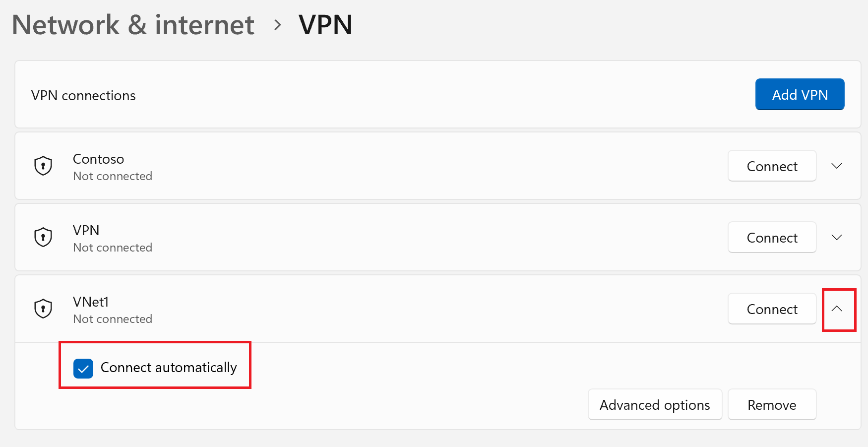 如果要配置的配置文件已连接,请断开连接,然后突出显示配置文件,并选中“自动连接”复选框。