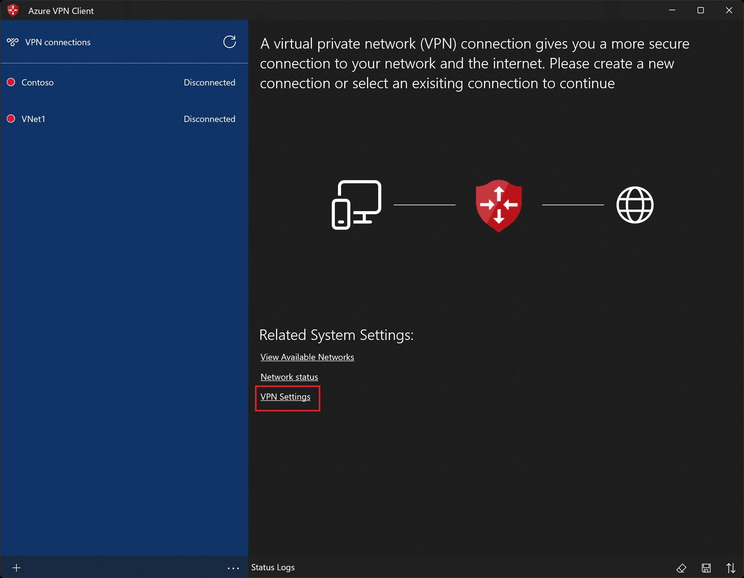 Azure VPN 客户端系统托盘在版本 4.0.0.0 及更高版本中提供,可让你在保持连接处于活动状态的同时关闭 Azure VPN 客户端应用程序。 关闭应用程序时,可以在 Windows 系统托盘中看到该应用程序。 可以通过单击托盘图标以压缩模式重新打开 Azure VPN 客户端应用。