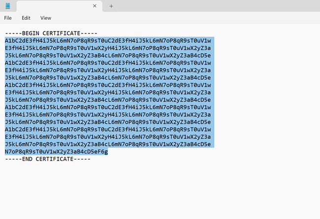 导出根证书的公钥数据。 导出的文件必须采用 .cer 格式。 不要加密证书值。