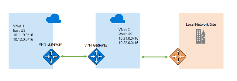 - 在受影响的 VNet 和表示本地位置的本地网络网关之间建立显式连接。 这还需要更改本地路由器配置来创建和配置 IPsec 隧道。