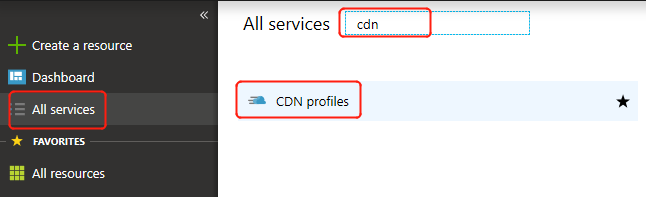 进入 CDN 服务 在 Azure 管理门户的导航窗格中,选择“所有服务”,输入“CDN”,然后选择“CDN 配置文件”