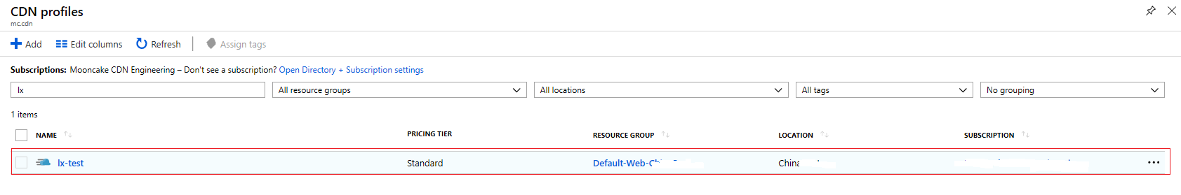 在“CDN 配置文件”列表中找到刚创建的记录,然后单击“名称”。