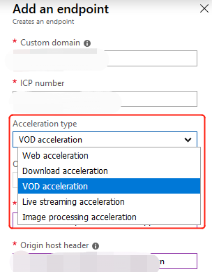 本文将介绍如何创建 VOD 加速域名。 有关如何创建内容分发网络加速节点的详细信息,请参阅使用 Azure 内容分发网络