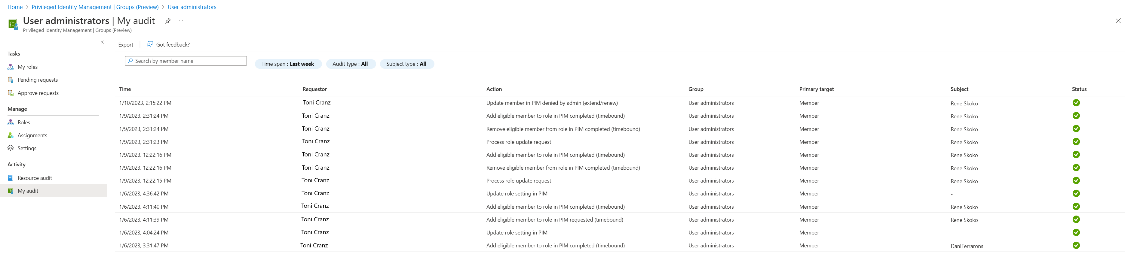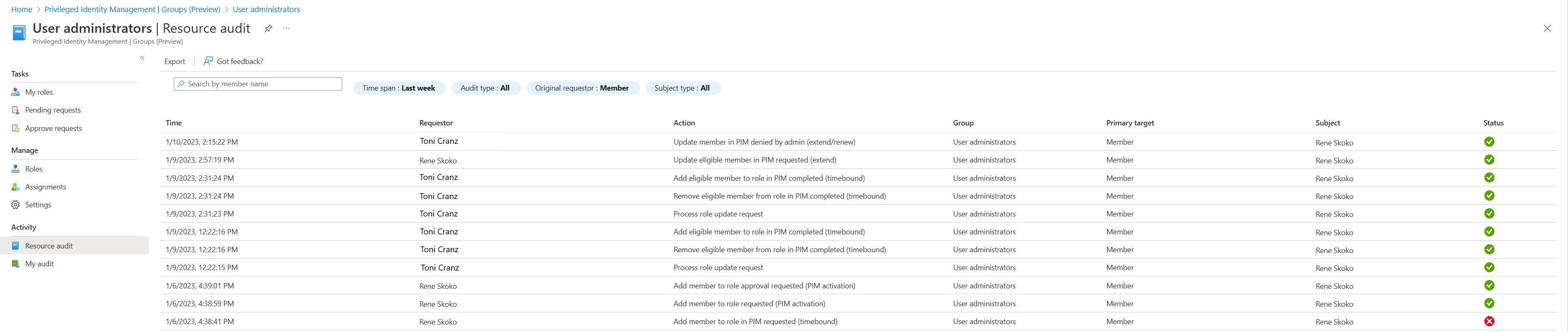 可以通过资源审核查看与 PIM 中的组关联的所有活动。