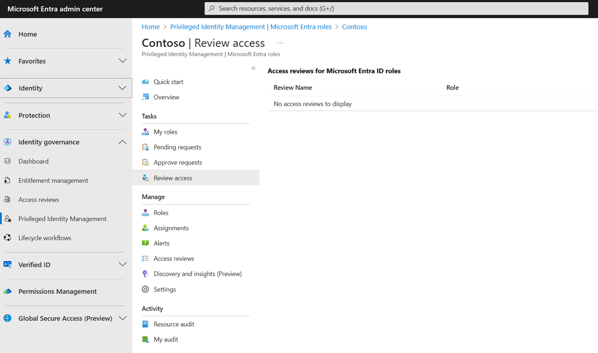 在详细信息页上,以下选项可用于管理“Azure 资源”和“Microsoft Entra 角色”的评审: