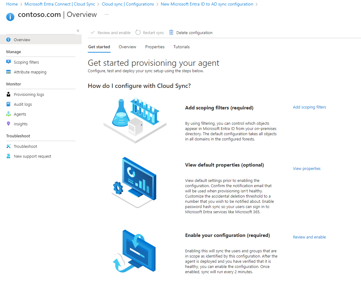 - 打开 Microsoft Entra 管理中心 >Entra ID>Entra Connect>Cloud Sync。