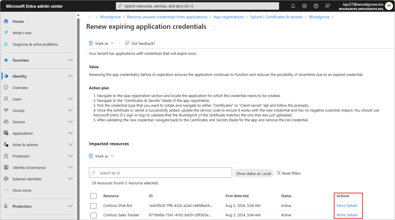 Microsoft Entra 建议:续订即将过期的应用程序凭据(预览版)