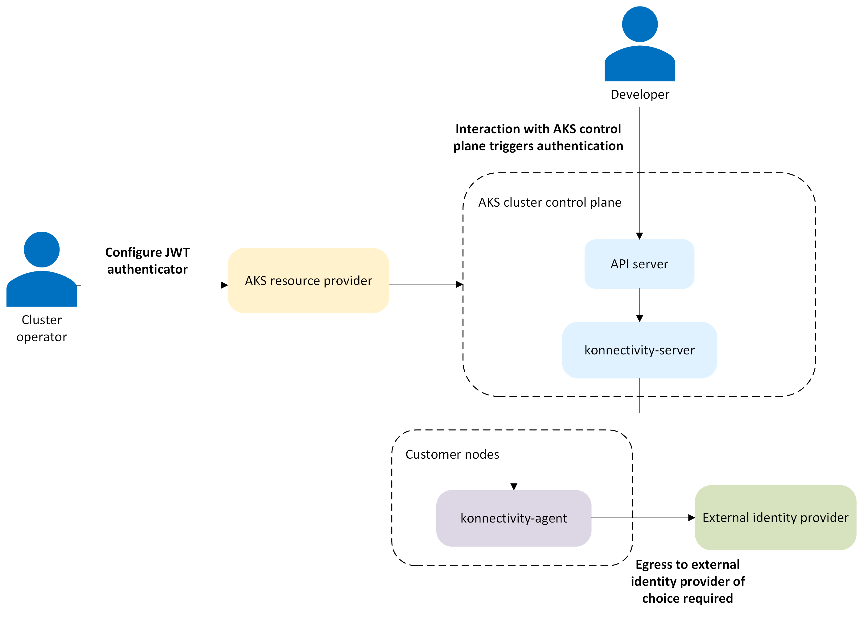将外部标识提供者与 AKS 结构化身份验证配合使用时,请记住以下安全注意事项: