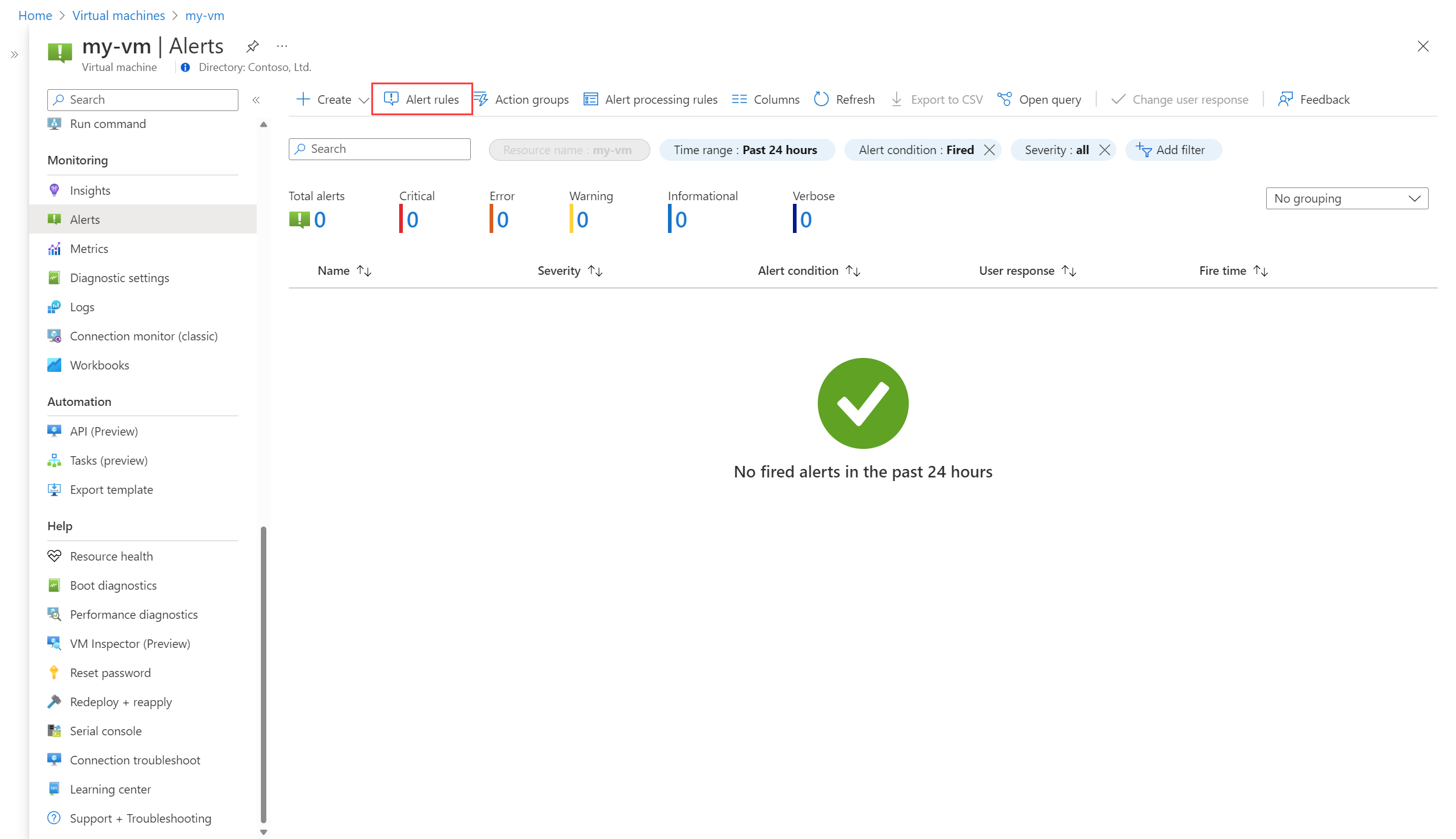 警报规则创建完成后,会看到 VM 的警报屏幕。