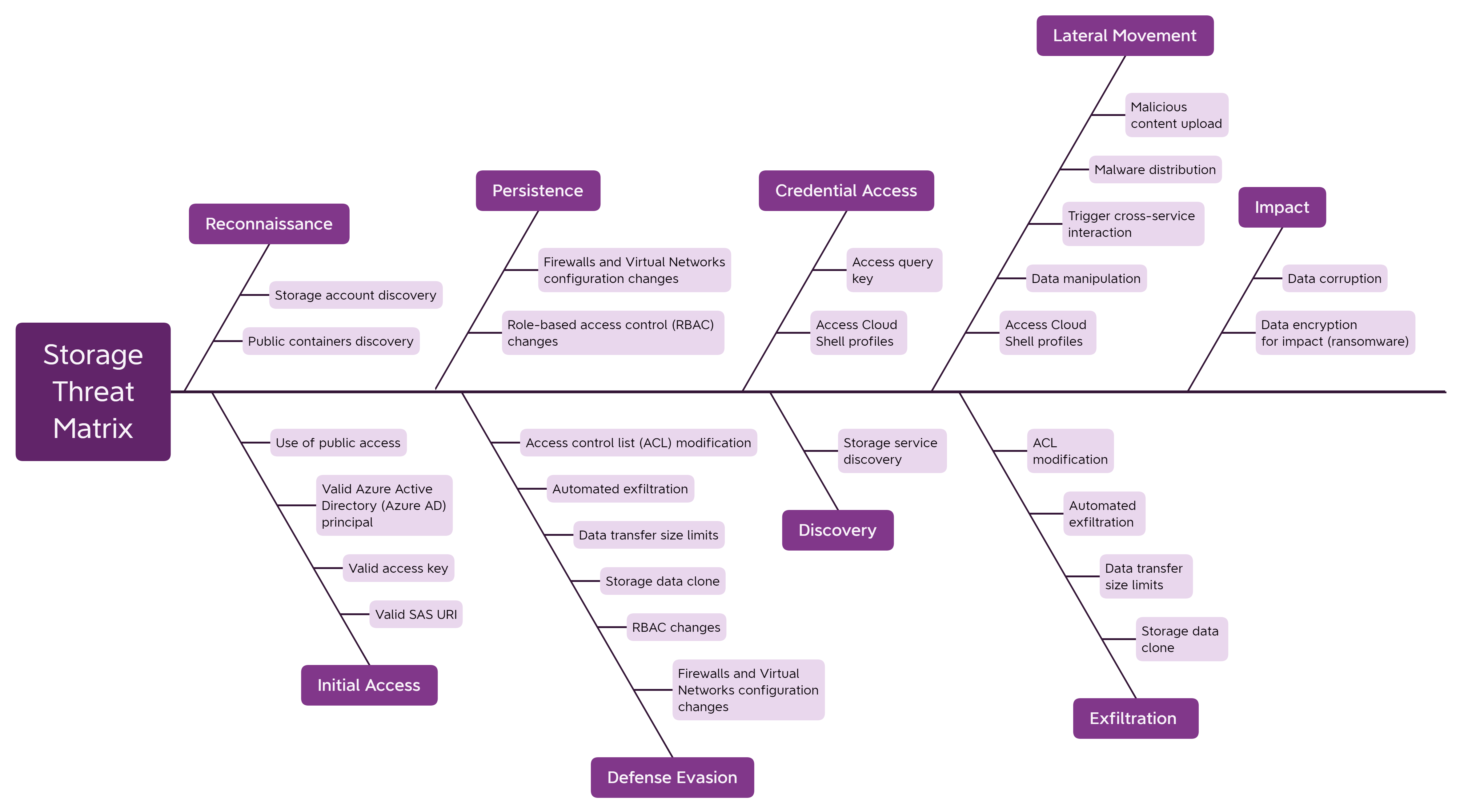 示意图显示 Microsoft 的云存储安全威胁矩阵。