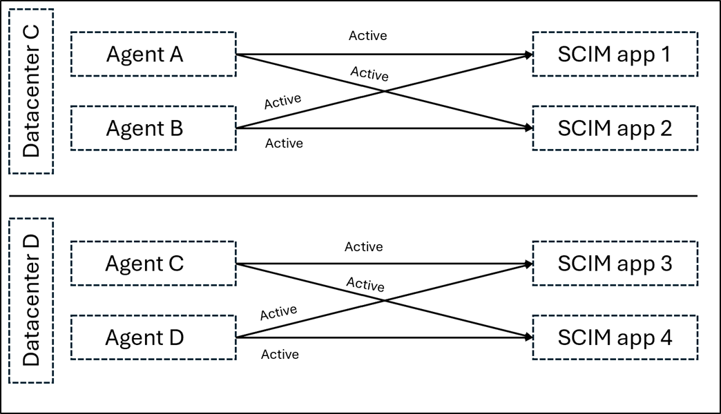 对于使用 SCIM 连接器的本地应用:建议每个应用程序有两个活动代理。