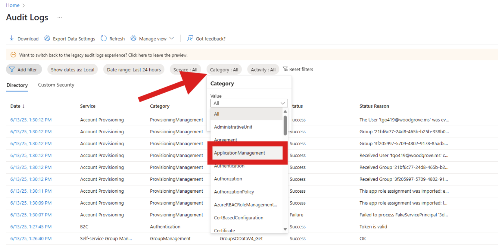 若要在 Microsoft Entra 审核日志中查看和使用这些属性,需要: