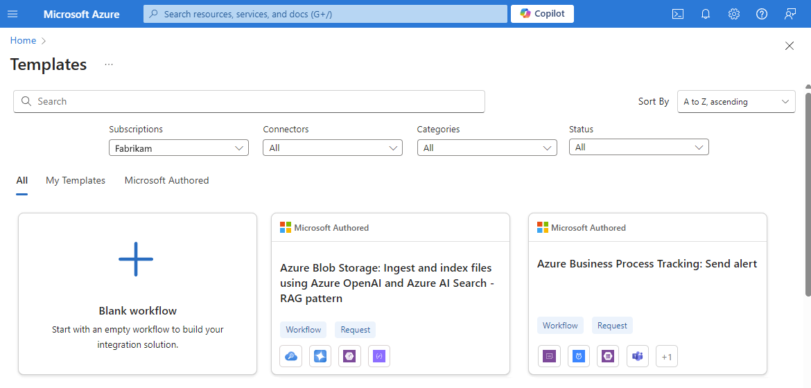 只能在有权访问的 Azure 订阅中查看工作流模板。