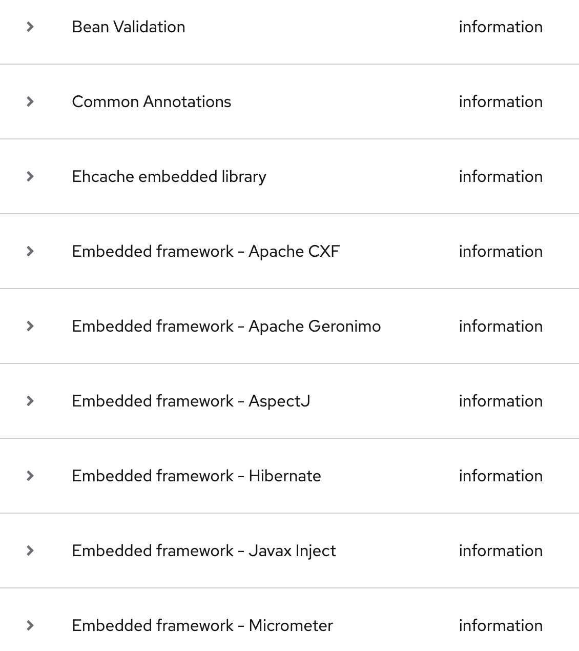 发现报告是在发现阶段生成的报告。 它显示应用程序在“信息”类别中使用的技术列表。 此报告只是告知你 appcat 发现的技术使用情况。