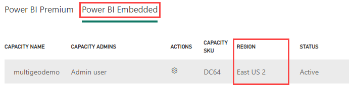 使用 Multi-Geo 创建新的 Power BI Embedded 容量资源