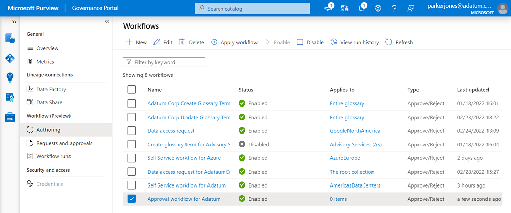 Microsoft Purview 工作流引擎将始终解析为与集合层次结构路径关联的最接近的工作流。 如果未找到直接绑定,它将在树中向上遍历,以查找与集合树中最接近的父级关联的工作流。
