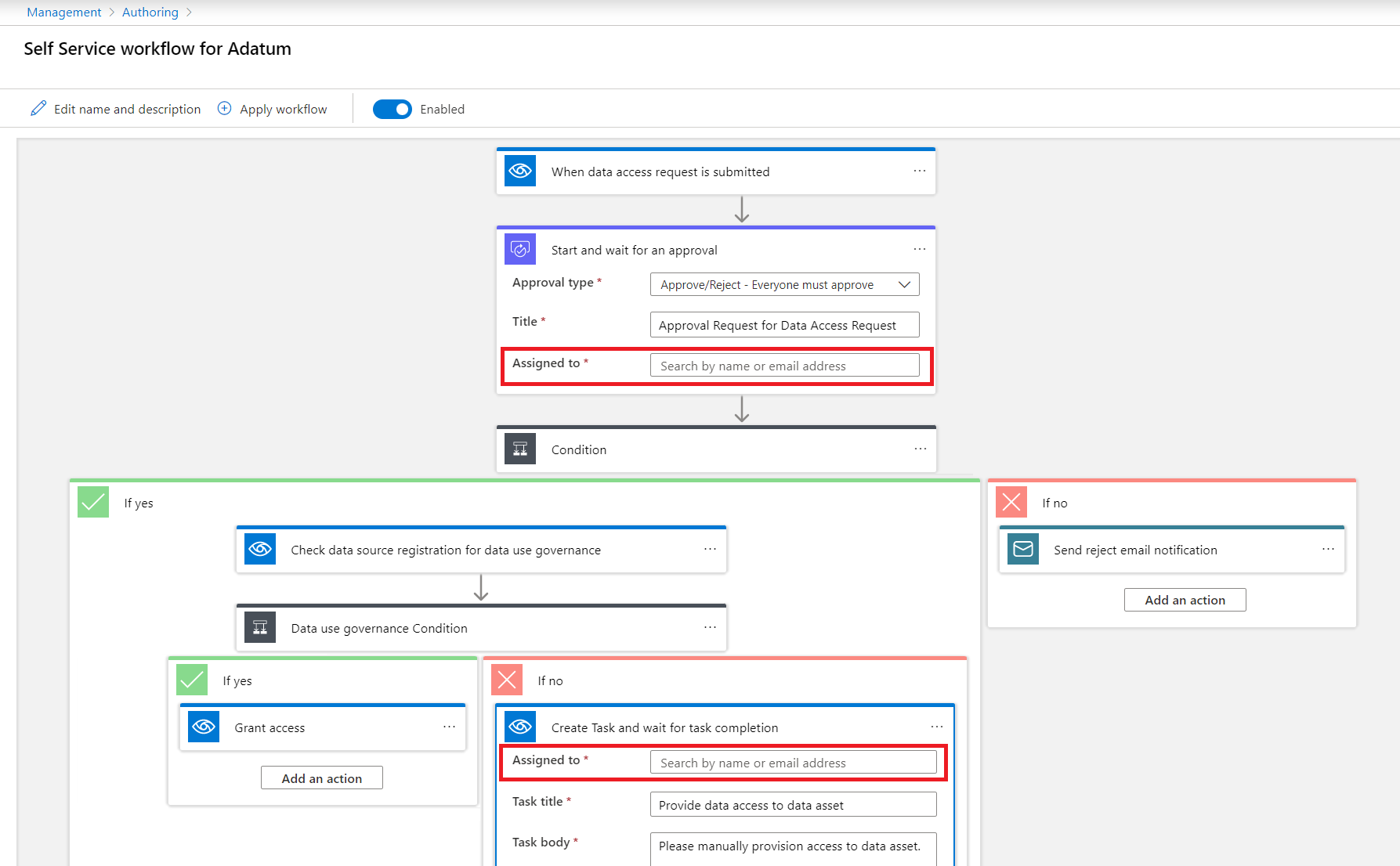 如果 Microsoft Purview 策略不支持源,请使用 创建任务并等待任务完成 连接器将 任务 分配给可以提供访问权限的用户或组。