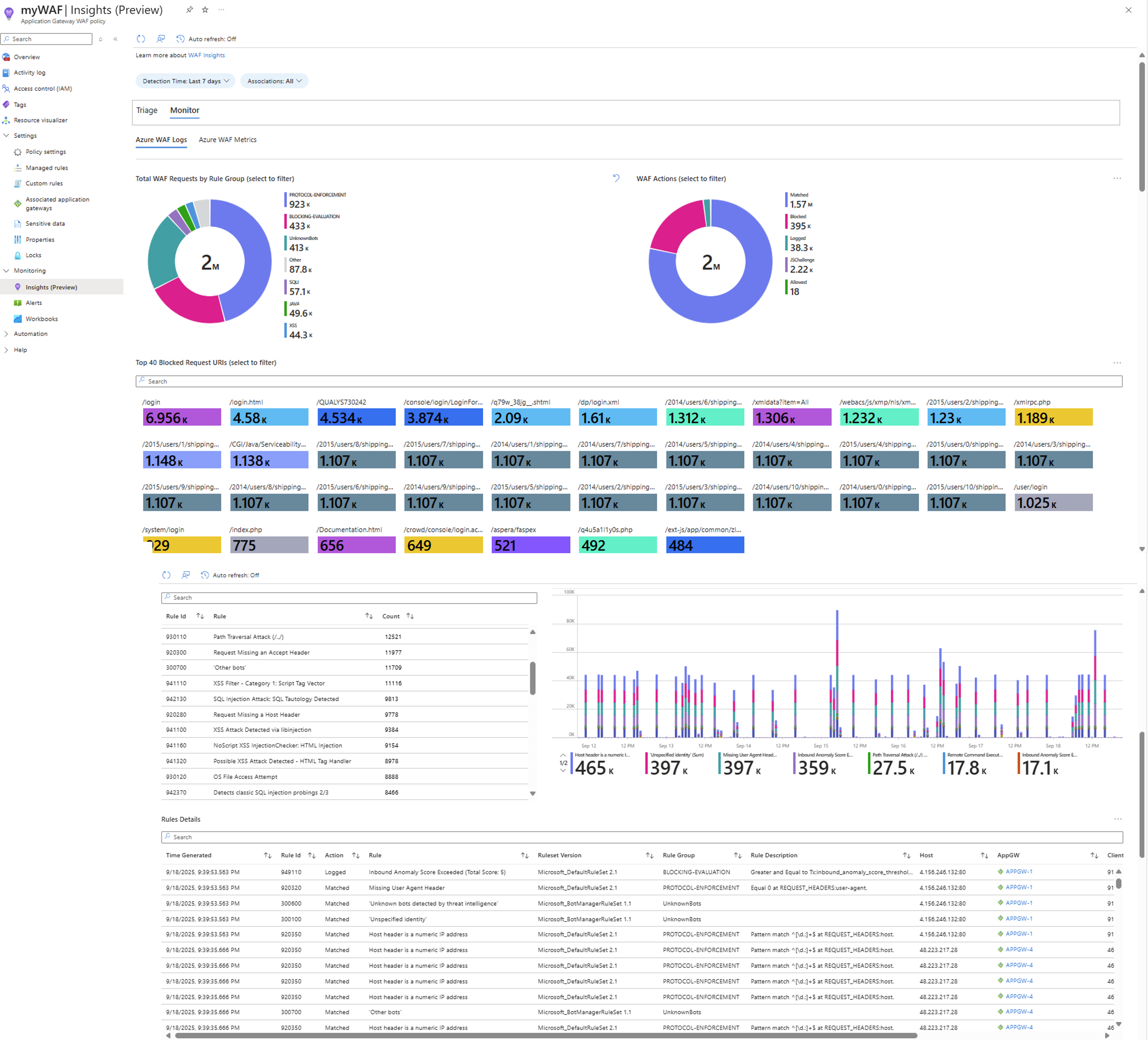 WAF Insights 体验分为两个主要选项卡: