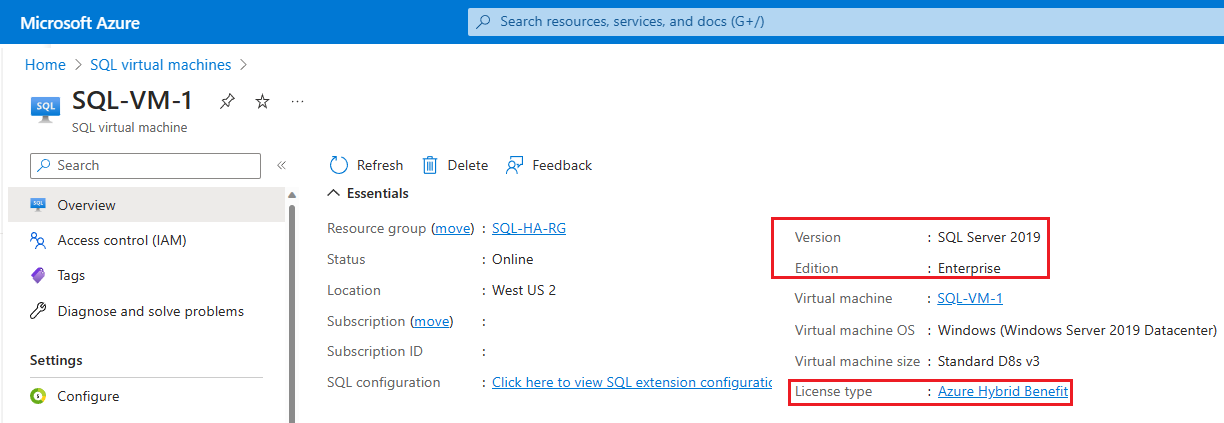 更改 SQL Server 版本后,重新向 SQL IaaS 代理扩展注册 SQL Server VM,以便可以使用 Azure 门户查看 SQL Server 的版本。 列出的版本号现在应该反映 SQL Server 安装的新升级版本和版本。