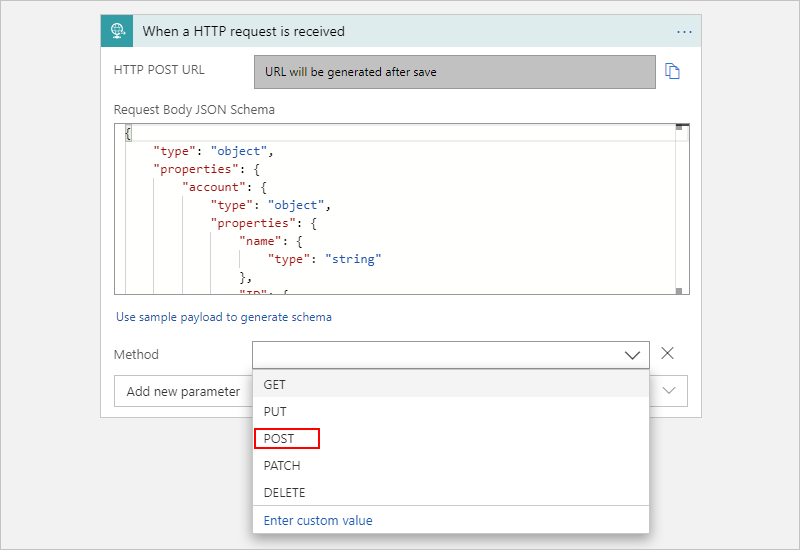 6. “方法” 列表中选择触发器期望用于处理入站请求的方法。