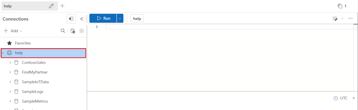 在连接到 Log Analytics 工作区或 Application Insights 资源之前,请先确认 Azure 数据资源管理器本机群集(例如 help 群集)是否显示在左侧菜单中。