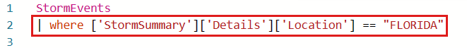 Location字段的路径,该字段嵌套在StormSummary列动态属性包对象中的Details字段下。选择 JPATH 右侧的图标以复制它。 然后,粘贴 JPATH 并使用它作为筛选器或与他人共享。