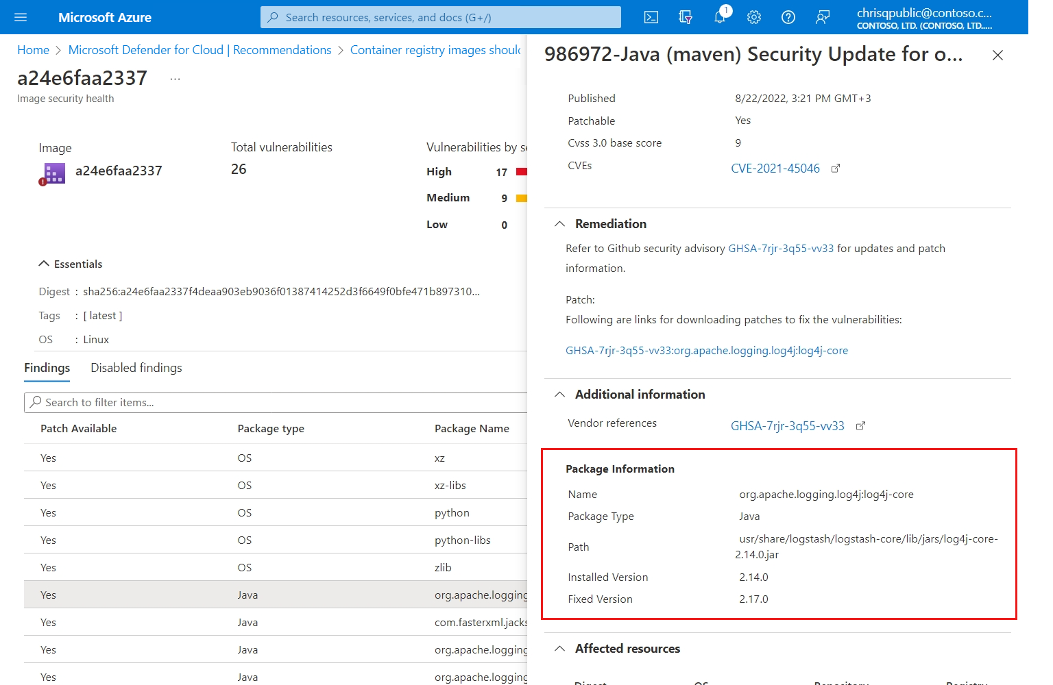 将新的容器映像推送到Azure Container Registry时,会自动触发扫描本身。 发现的漏洞将以安全中心建议的形式显示,其中包括安全评分,以及有关如何修补这些漏洞以减小允许的受攻击面的信息。