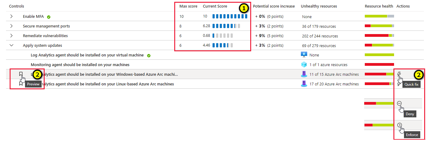 Azure Security Center安全功能的增强版本现在以预览版提供。 在此版本中,多个建议被组合到安全控件中,可更好地反映出你易受攻击的攻击面(例如限制对管理端口的访问)。