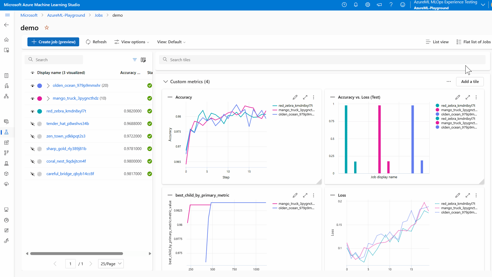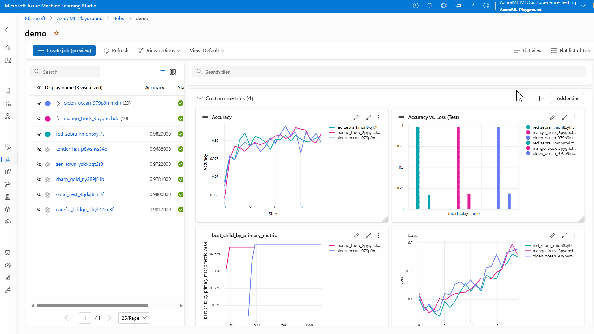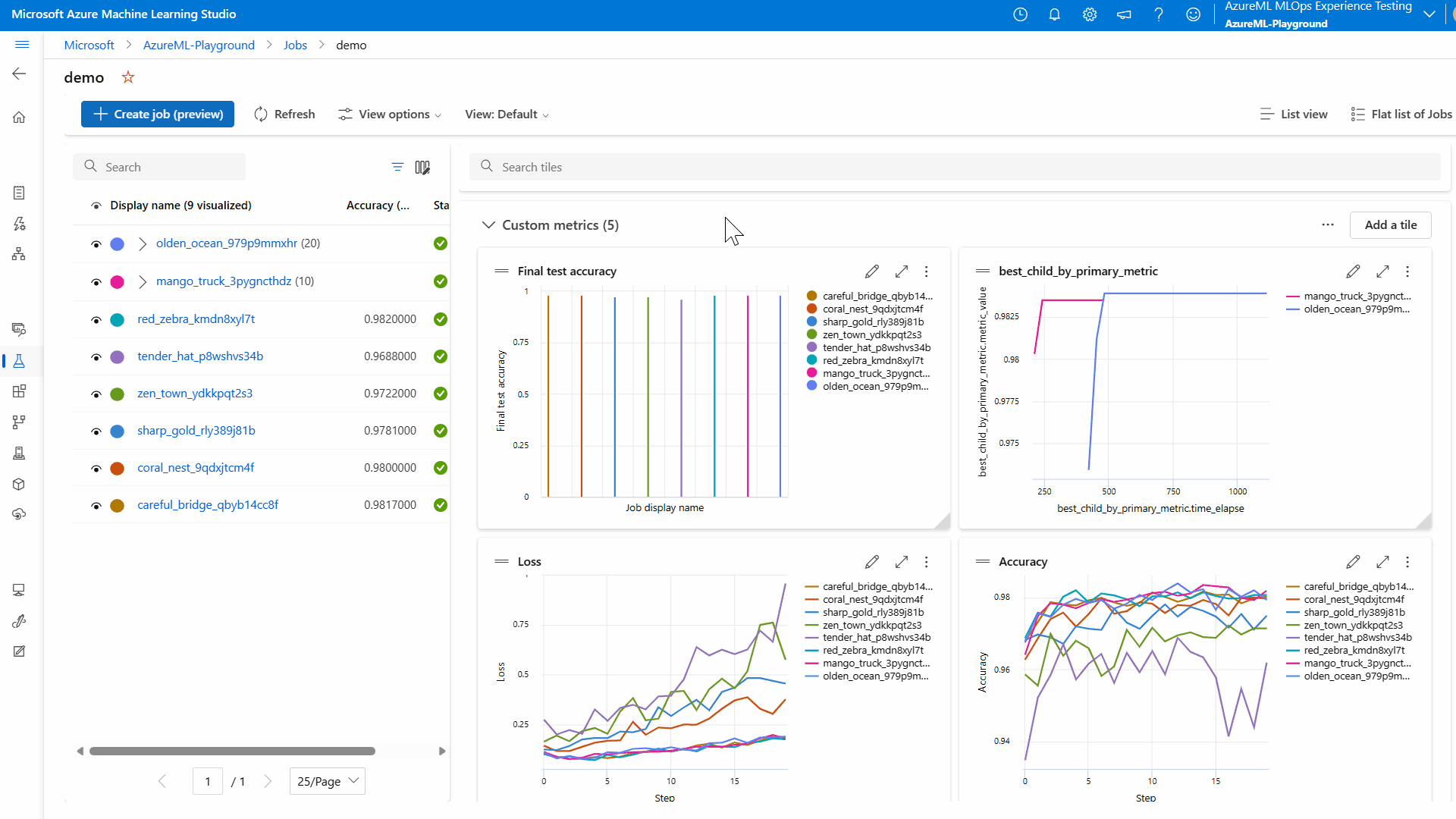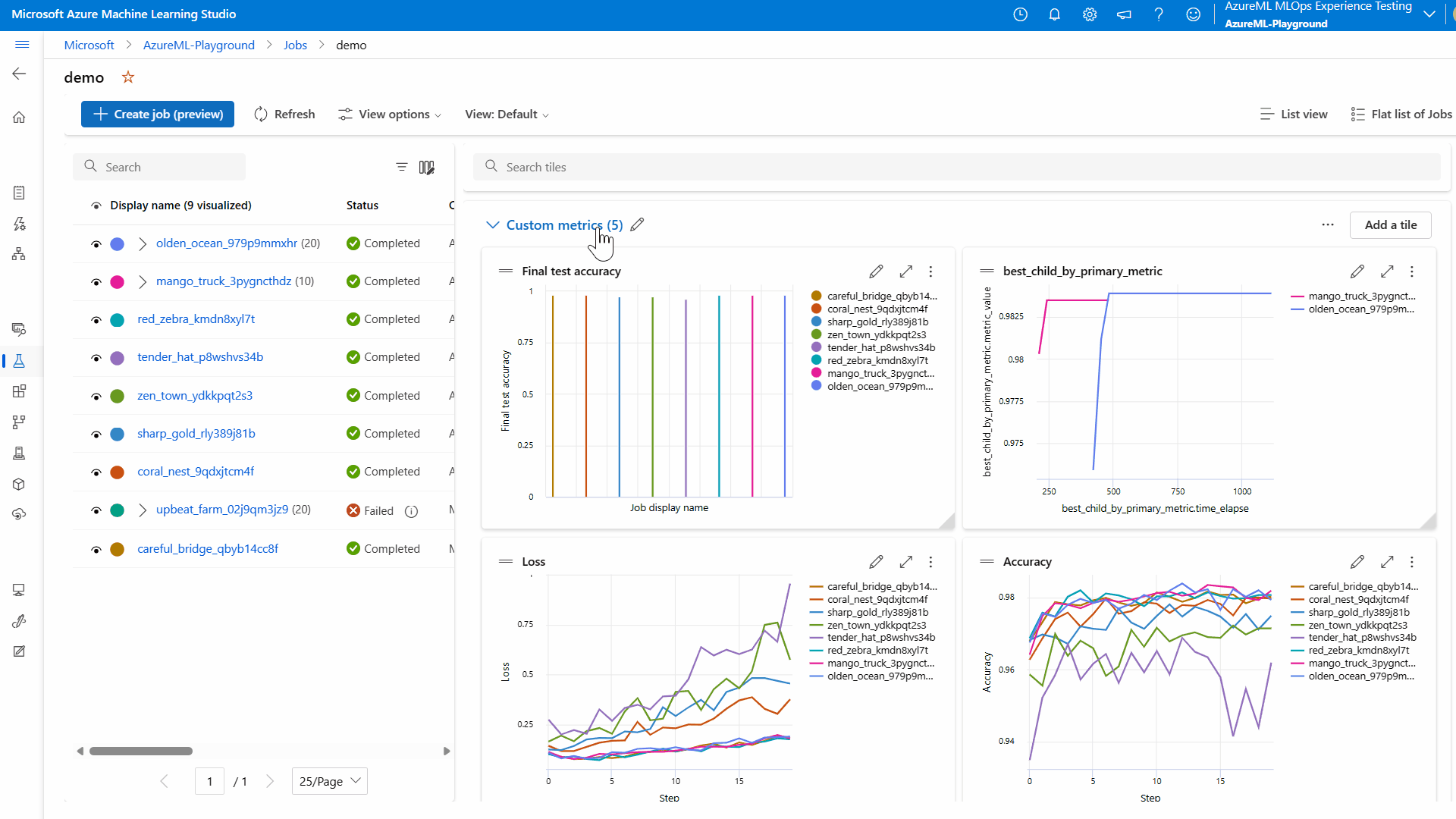 - 选择“所有试验”以查看试验中的所有作业,或选择“所有作业”以查看工作区中已提交的所有作业。