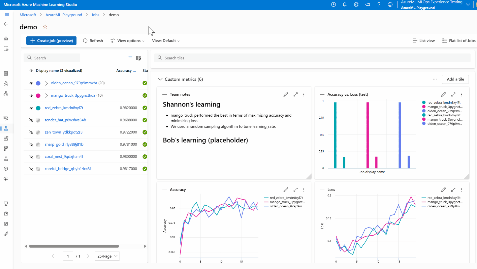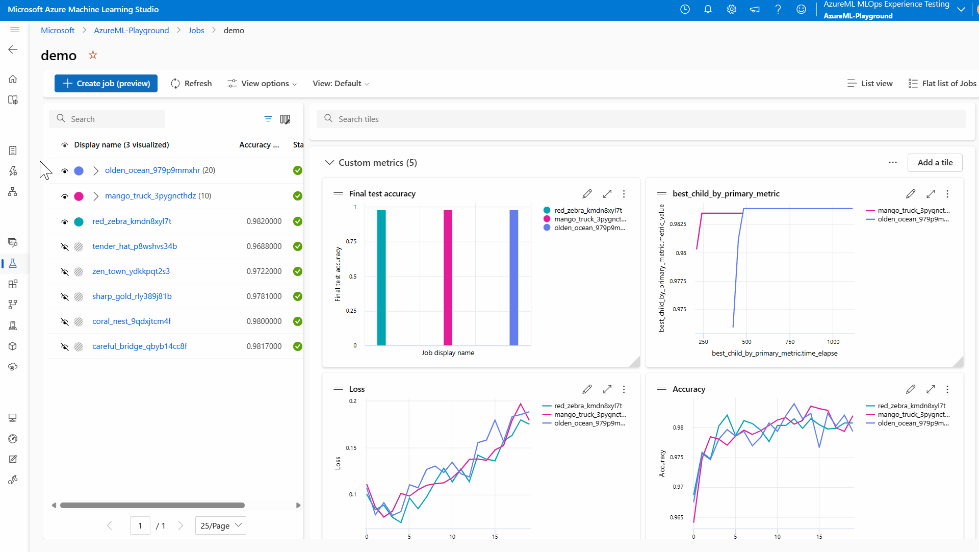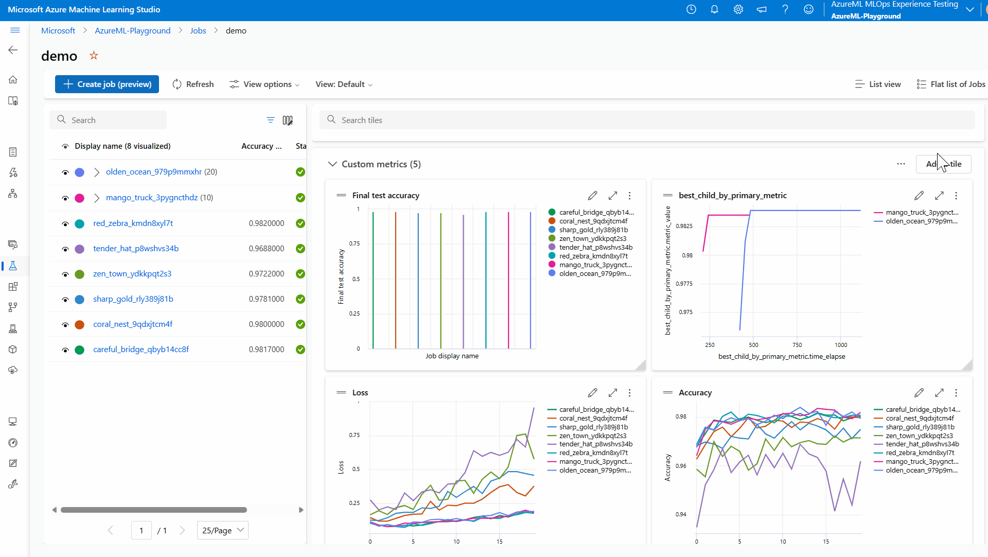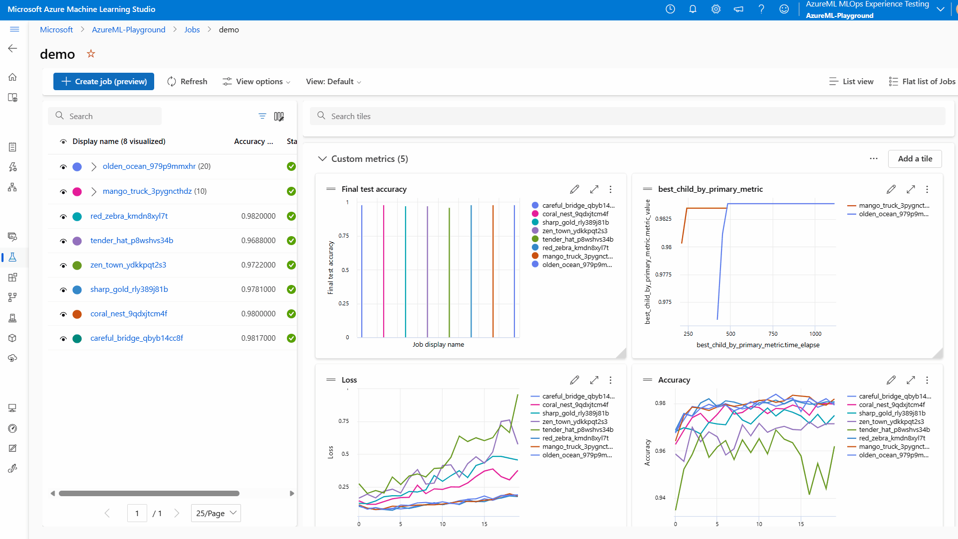 - 选择“所有试验”以查看试验中的所有作业,或选择“所有作业”以查看工作区中已提交的所有作业。