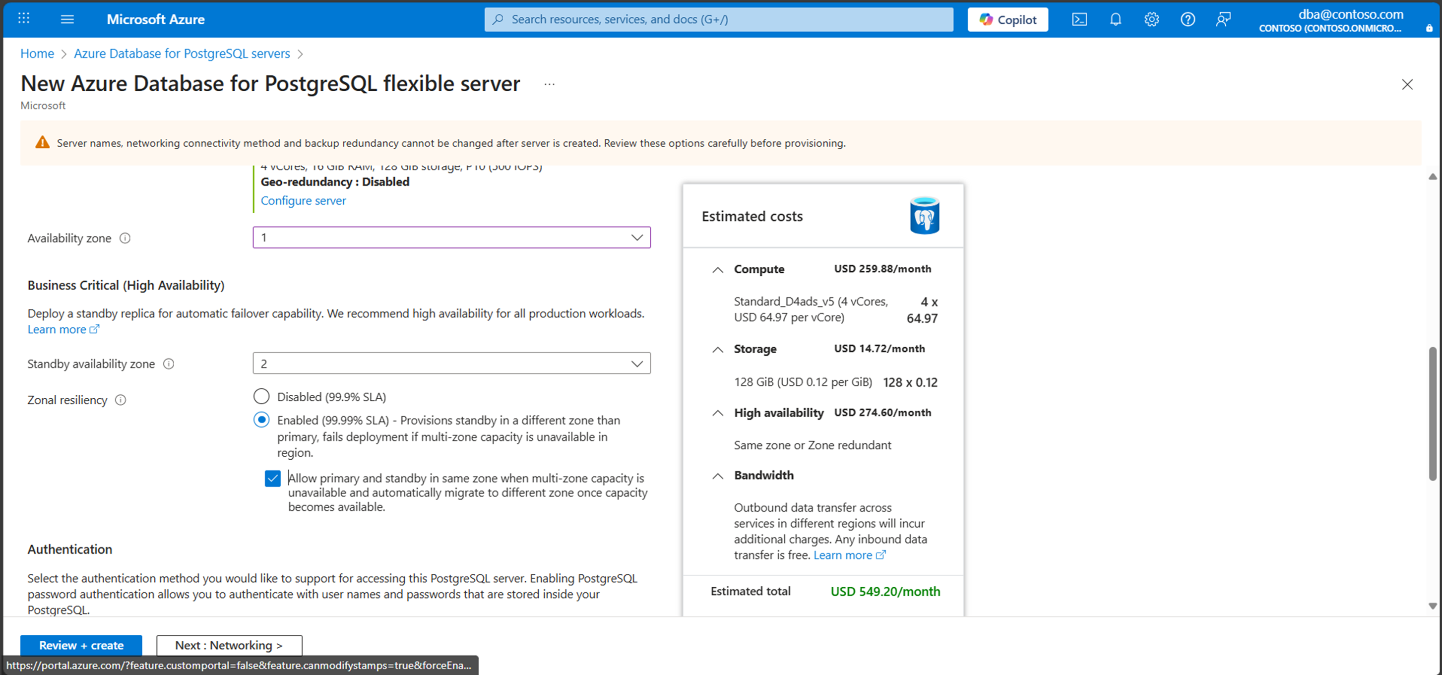 • 默认情况下,服务器尝试在不同的可用性区域中创建备用服务器,并采用 区域冗余 HA 模式,以实现最大区域复原能力。